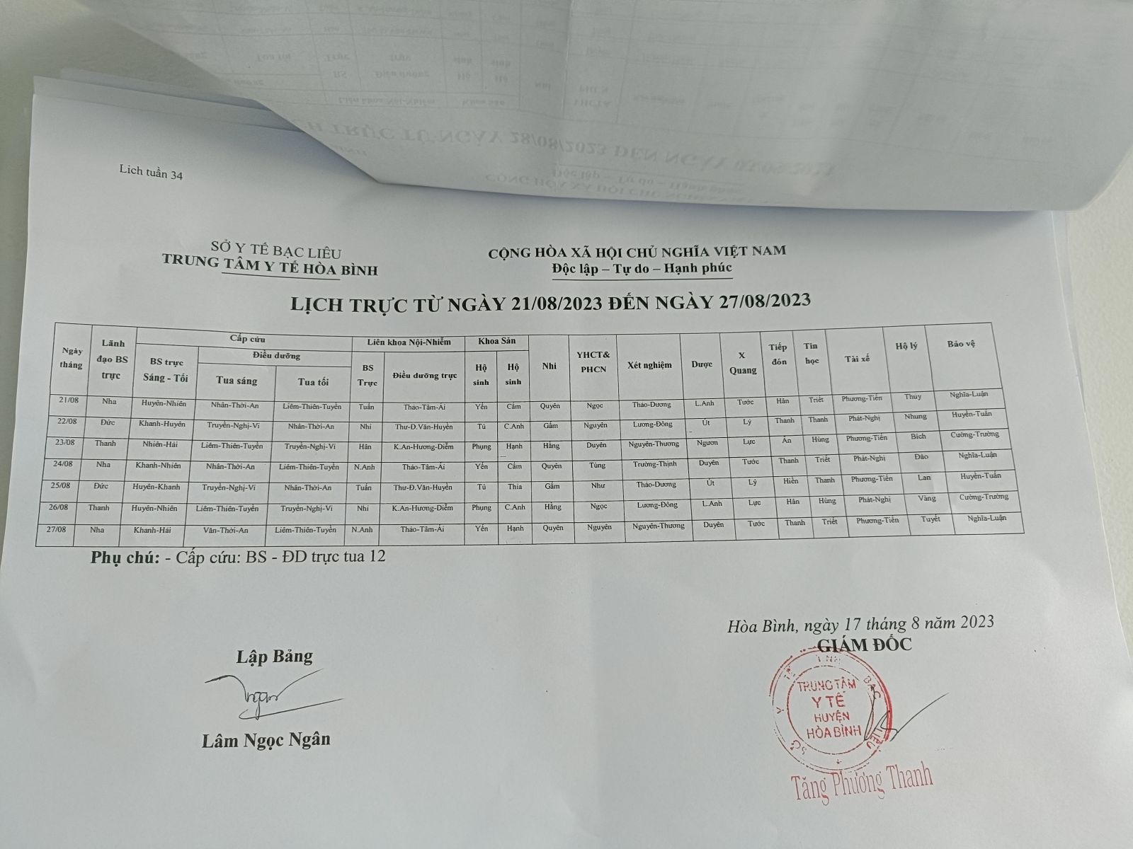 Thứ 5, 24/08/2023 | 16:25 A- A A+ | Lịch Trực Tuần 34 Đọc bài Lưu Tổng số điểm của bài viết là: 0 trong 0 đánh giá Click để đánh giá bài viết